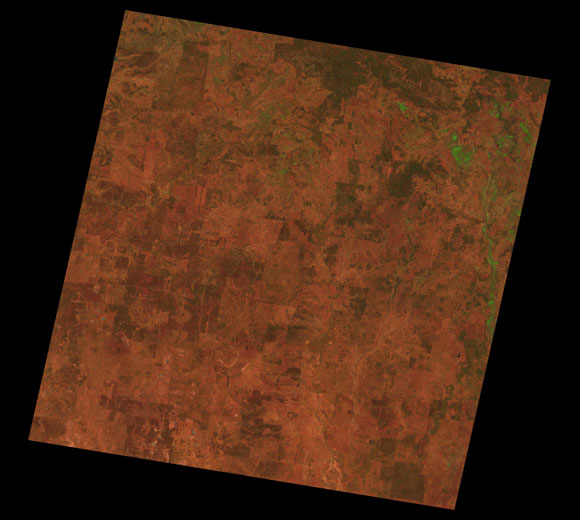 Morven Landsat SceneWRS path/row: 93/78-79 Images are colour-mapped to enhance the contrast of water bodies (Shortwave→Red, Near-infrared→Green, Green→Blue) Copyright Commonwealth of Australia - Geoscience Australia. Imagery post-processed by DETSI. This page should be cited as: Department of the Environment, Tourism, Science and Innovation, Queensland (2013) Morven Landsat Scene, WetlandInfo website, accessed 15 December 2025. Available at: https://wetlandinfo.detsi.qld.gov.au/wetlands/resources/tools/hydro-climate/scene/morv/ |