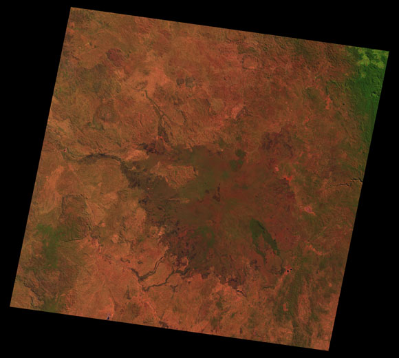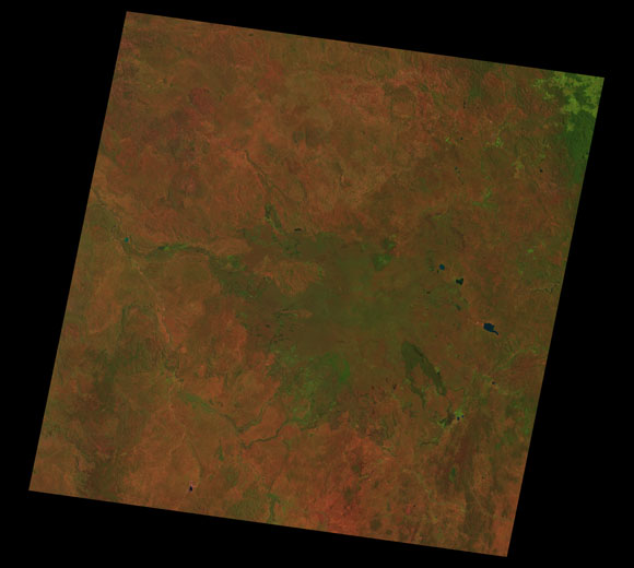 Mt Garnet Landsat SceneImages are colour-mapped to enhance the contrast of water bodies (Shortwave→Red, Near-infrared→Green, Green→Blue) Copyright Commonwealth of Australia - Geoscience Australia. Imagery post-processed by DETSI. This page should be cited as: Department of the Environment, Tourism, Science and Innovation, Queensland (2013) Mt Garnet Landsat Scene, WetlandInfo website, accessed 15 December 2025. Available at: https://wetlandinfo.detsi.qld.gov.au/wetlands/resources/tools/hydro-climate/scene/mtga/ |