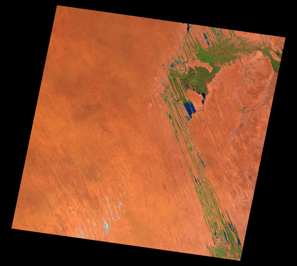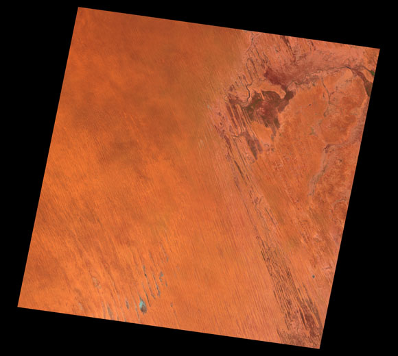 Poepple Corner Landsat SceneWRS path/row: 99/77-78 Images are colour-mapped to enhance the contrast of water bodies (Shortwave→Red, Near-infrared→Green, Green→Blue) Copyright Commonwealth of Australia - Geoscience Australia. Imagery post-processed by DETSI. This page should be cited as: Department of the Environment, Tourism, Science and Innovation, Queensland (2013) Poepple Corner Landsat Scene, WetlandInfo website, accessed 15 December 2025. Available at: https://wetlandinfo.detsi.qld.gov.au/wetlands/resources/tools/hydro-climate/scene/poep/ |