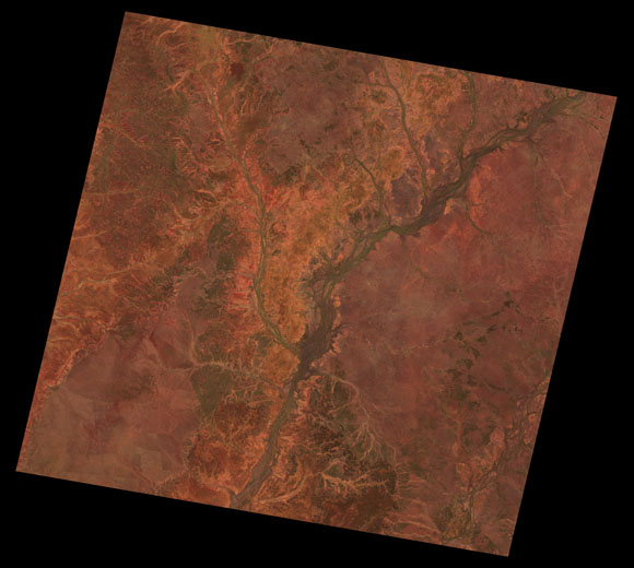 Stonehenge Landsat SceneWRS path/row: 96/76-77 Images are colour-mapped to enhance the contrast of water bodies (Shortwave→Red, Near-infrared→Green, Green→Blue) Copyright Commonwealth of Australia - Geoscience Australia. Imagery post-processed by DETSI. This page should be cited as: Department of the Environment, Tourism, Science and Innovation, Queensland (2013) Stonehenge Landsat Scene, WetlandInfo website, accessed 15 December 2025. Available at: https://wetlandinfo.detsi.qld.gov.au/wetlands/resources/tools/hydro-climate/scene/ston/ |
