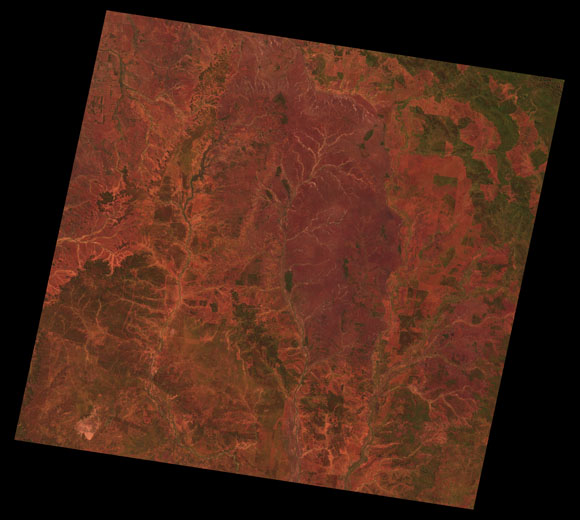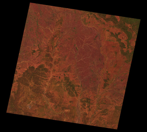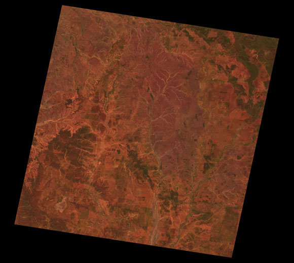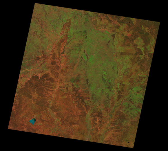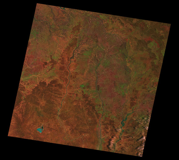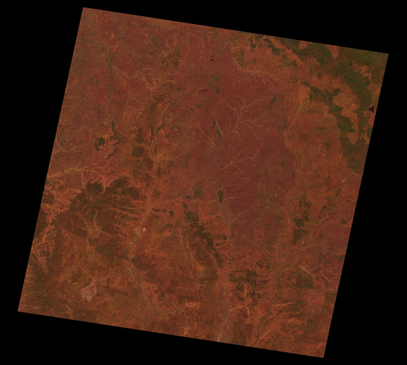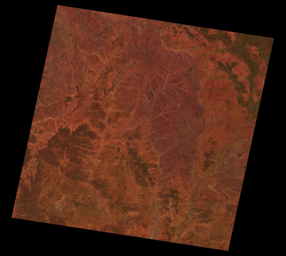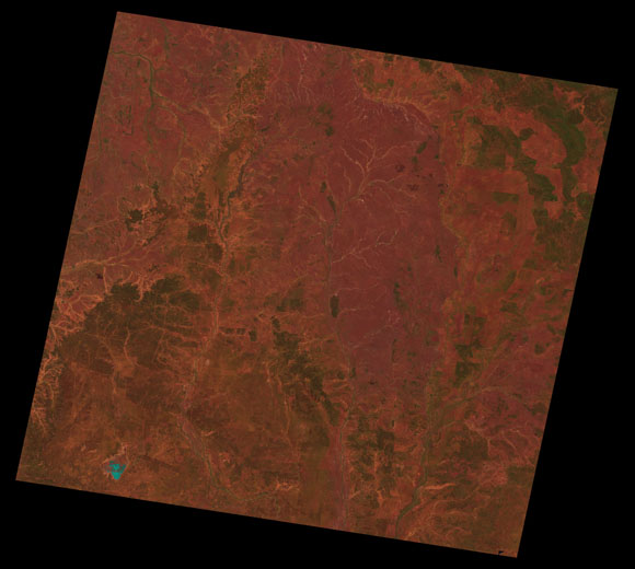Tambo Landsat SceneImages are colour-mapped to enhance the contrast of water bodies (Shortwave→Red, Near-infrared→Green, Green→Blue) Copyright Commonwealth of Australia - Geoscience Australia. Imagery post-processed by DETSI. This page should be cited as: Department of the Environment, Tourism, Science and Innovation, Queensland (2013) Tambo Landsat Scene, WetlandInfo website, accessed 15 December 2025. Available at: https://wetlandinfo.detsi.qld.gov.au/wetlands/resources/tools/hydro-climate/scene/tamb/ |