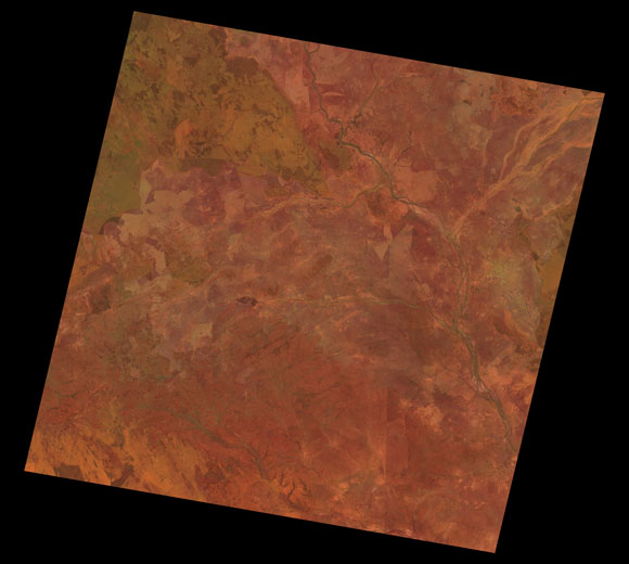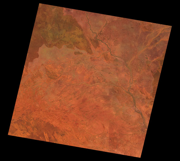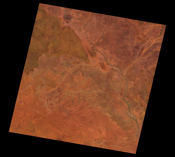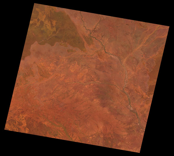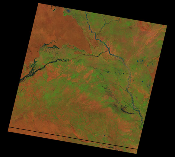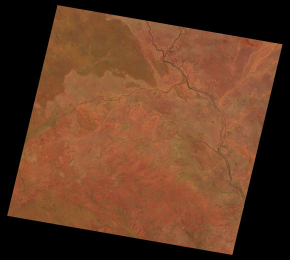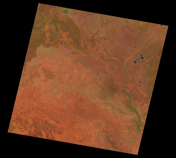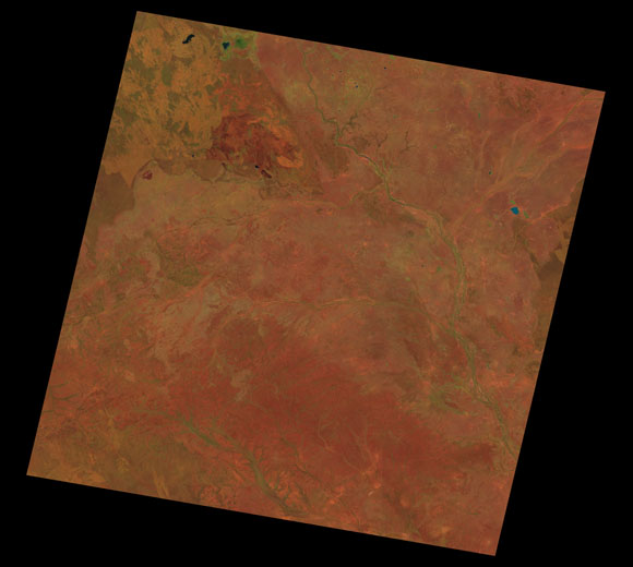Urandangi Landsat SceneWRS path/row: 100/74-75 Images are colour-mapped to enhance the contrast of water bodies (Shortwave→Red, Near-infrared→Green, Green→Blue) Copyright Commonwealth of Australia - Geoscience Australia. Imagery post-processed by DETSI. This page should be cited as: Department of the Environment, Tourism, Science and Innovation, Queensland (2013) Urandangi Landsat Scene, WetlandInfo website, accessed 15 December 2025. Available at: https://wetlandinfo.detsi.qld.gov.au/wetlands/resources/tools/hydro-climate/scene/uran/ |