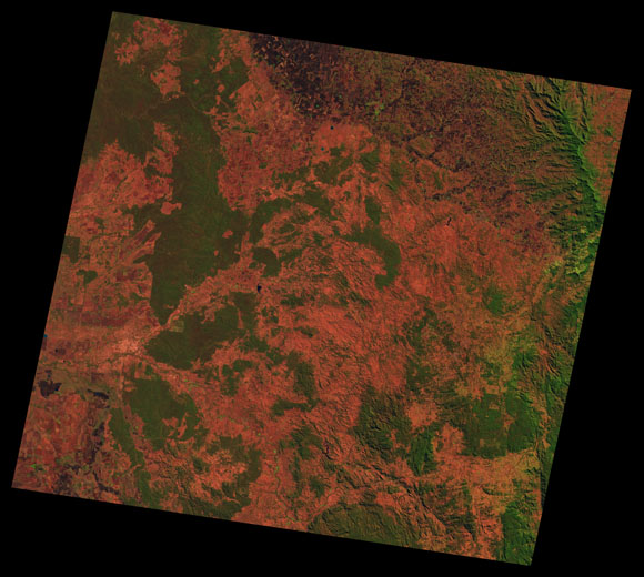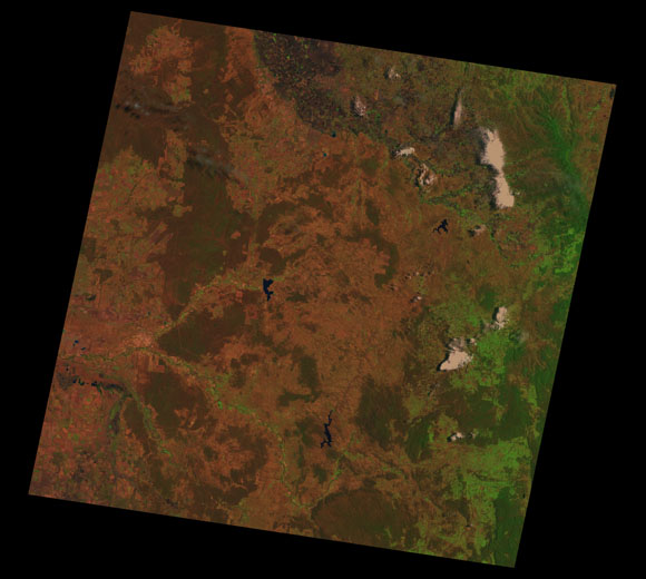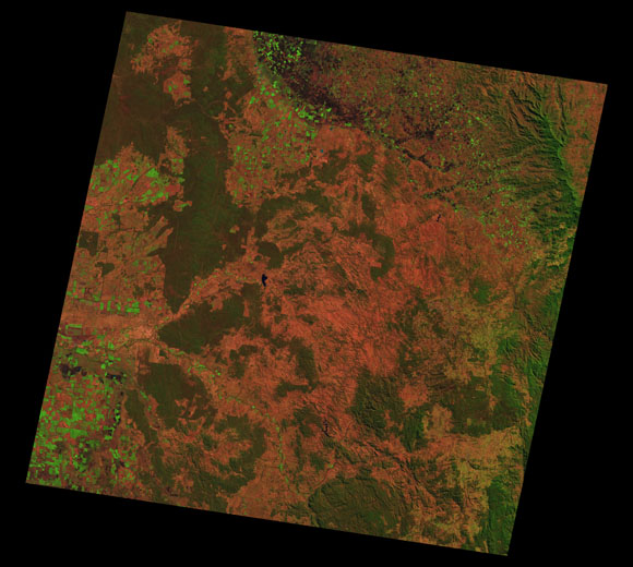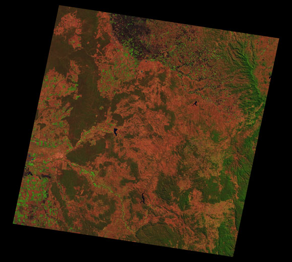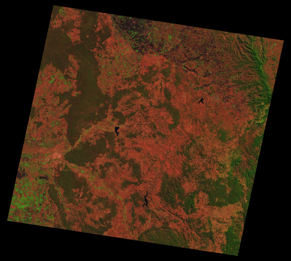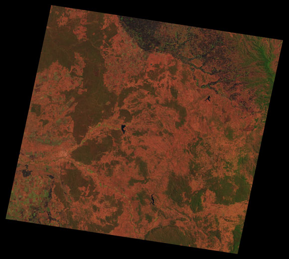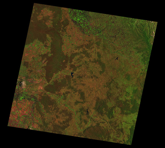 Warwick Landsat SceneWRS path/row: 90/79-80 Images are colour-mapped to enhance the contrast of water bodies (Shortwave→Red, Near-infrared→Green, Green→Blue) Copyright Commonwealth of Australia - Geoscience Australia. Imagery post-processed by DETSI. This page should be cited as: Department of the Environment, Tourism, Science and Innovation, Queensland (2013) Warwick Landsat Scene, WetlandInfo website, accessed 15 December 2025. Available at: https://wetlandinfo.detsi.qld.gov.au/wetlands/resources/tools/hydro-climate/scene/warw/ |