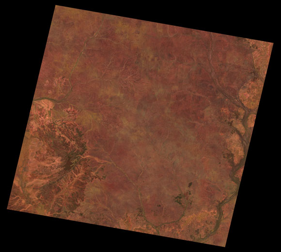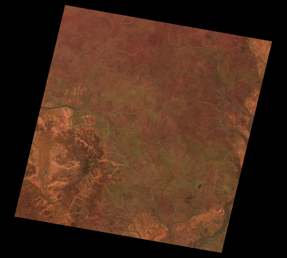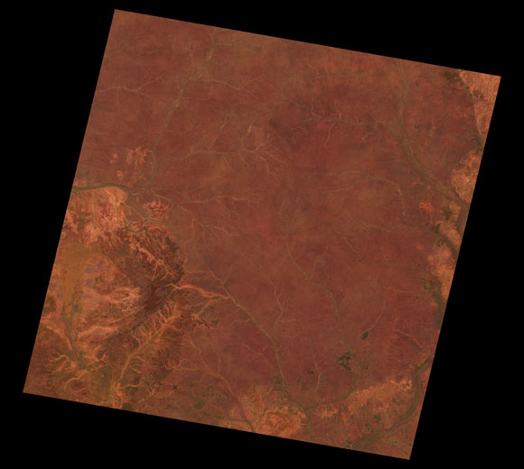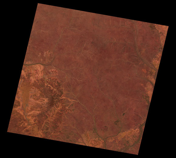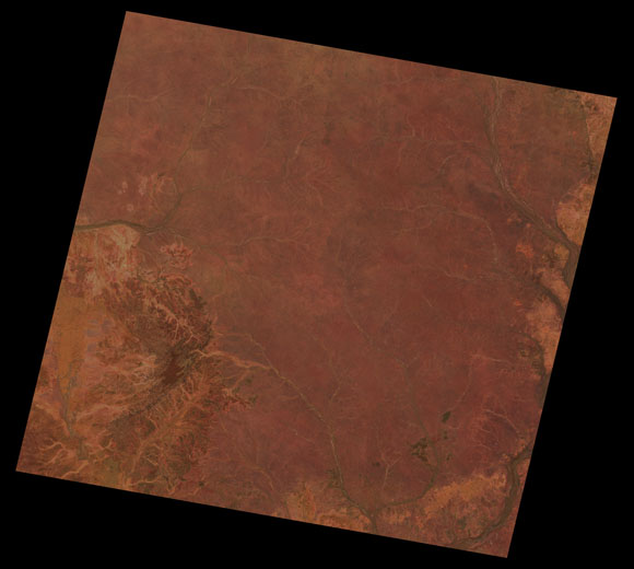 Winton Landsat SceneImages are colour-mapped to enhance the contrast of water bodies (Shortwave→Red, Near-infrared→Green, Green→Blue) Copyright Commonwealth of Australia - Geoscience Australia. Imagery post-processed by DETSI. This page should be cited as: Department of the Environment, Tourism, Science and Innovation, Queensland (2013) Winton Landsat Scene, WetlandInfo website, accessed 15 December 2025. Available at: https://wetlandinfo.detsi.qld.gov.au/wetlands/resources/tools/hydro-climate/scene/wint/ |