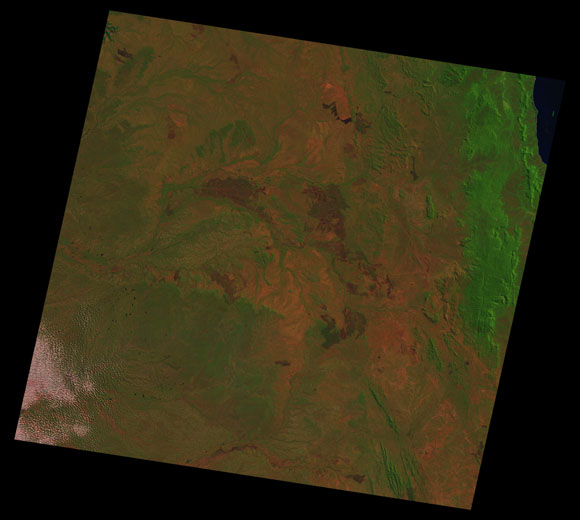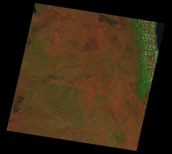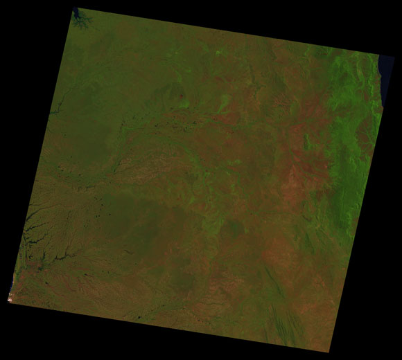 Wolverton Landsat SceneWRS path/row: 98/69-70 Images are colour-mapped to enhance the contrast of water bodies (Shortwave→Red, Near-infrared→Green, Green→Blue) Copyright Commonwealth of Australia - Geoscience Australia. Imagery post-processed by DETSI. This page should be cited as: Department of the Environment, Tourism, Science and Innovation, Queensland (2013) Wolverton Landsat Scene, WetlandInfo website, accessed 15 December 2025. Available at: https://wetlandinfo.detsi.qld.gov.au/wetlands/resources/tools/hydro-climate/scene/wolv/ |
