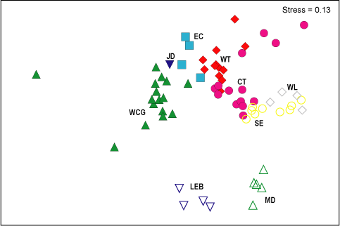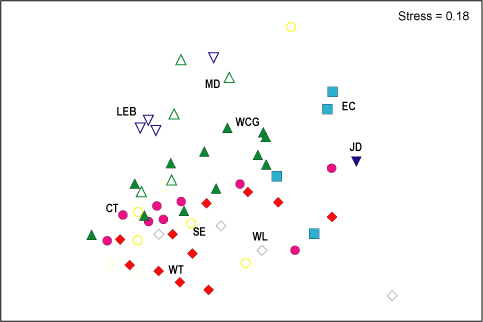 A review of the literature on the distribution was conducted, and from this a dataset of freshwater fish species occurring in each catchment in Queensland was created. Taxa that had strong marine or estuarine affinities and were also found in fresh waters were not used in analyses. The FBPs determined from the macroinvertebrate analyses were assigned to the fish data and One-Way Analysis of Similarity (ANOSIM) was performed [PRIMER (V5)] to examine the similarity between FBPs. Multi-Dimensional Scaling was used to create plots illustrating the relationship between catchments, labelled by FBP.